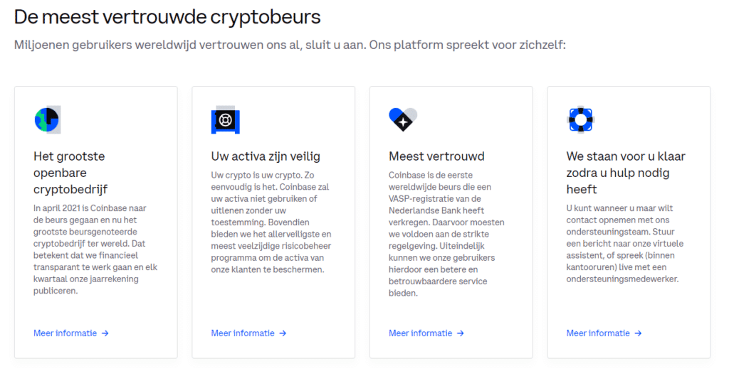 Veiligheid en betrouwbaarheid: Coinbase staat bekend om zijn strenge beveiligingsmaatregelen en betrouwbare reputatie in de branche.