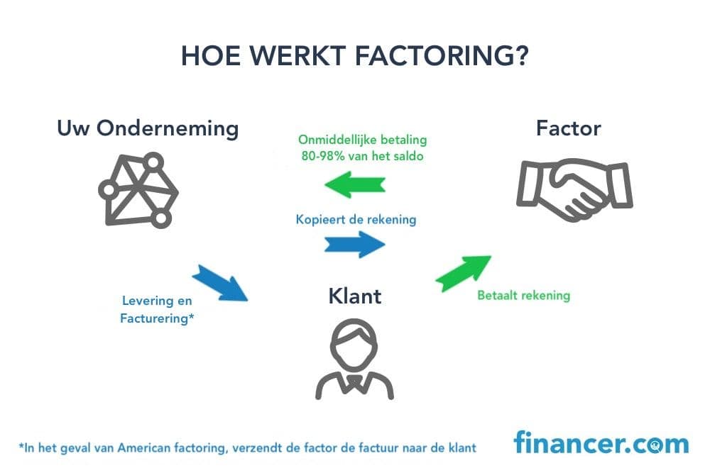 Met factoring kunt u uw uitstaande facturen verkopen aan het factoringbedrijf. Dit heet bevoorschotting en laat u toe uw bedrijfsvoering en cashflow op gang te houden.