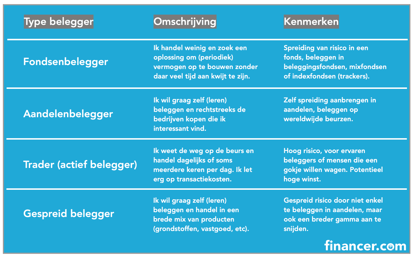 Hieronder heeft u een overzicht van de verschillende types beleggers: