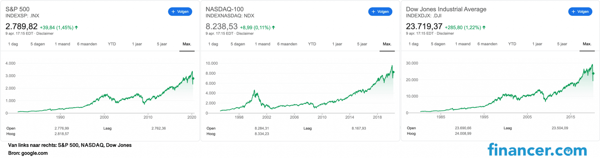 Investeert u bijvoorbeeld in de S&P 500, dan wordt uw geld verdeeld over de 500 grootste Amerikaanse aandelen.