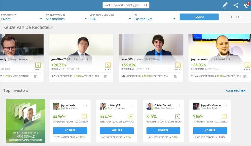 Op eToro kunt u het volledig automatisch doen via de CopyTrading-functie.