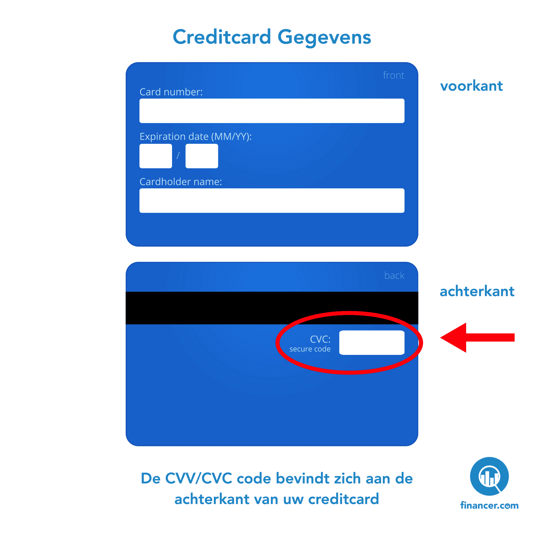 Je CVV/CVC code (3-cijferige code, deze staat doorgaans achteraan op je kaart)