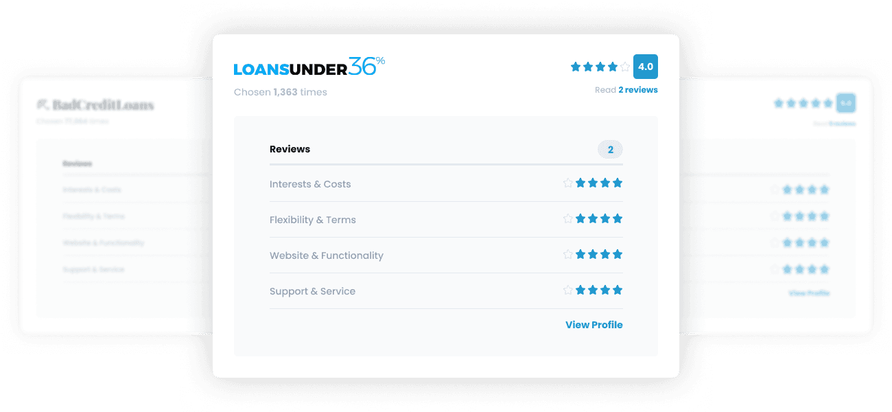 We werken hard om onze vergelijkingen relevant en up-to-date te houden. Elke vergelijking is slechts een indicatie en kan niet worden gegarandeerd. Leenkosten en beschikbare leenbedragen zijn afhankelijk van uw kredietprofiel en woonplaats.