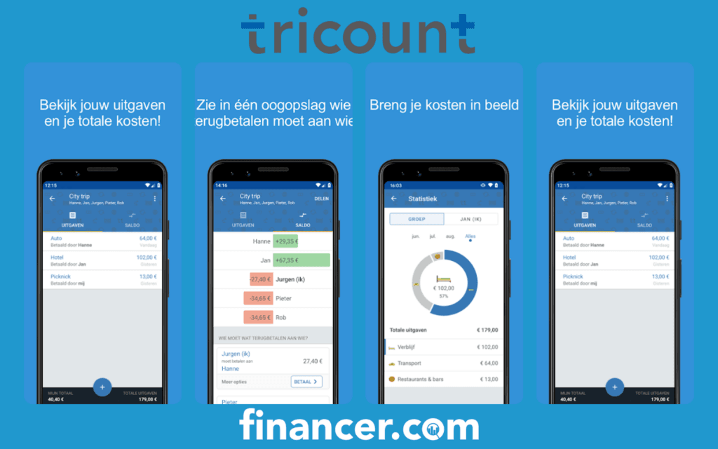 Bij Financer zijn wij het meest enthousiast over Wiebetaaltwat. Maar zijn jullie een groep vrienden die door meerdere landen reist met verschillende valuta's? Dan raden wij de app Tricount aan.