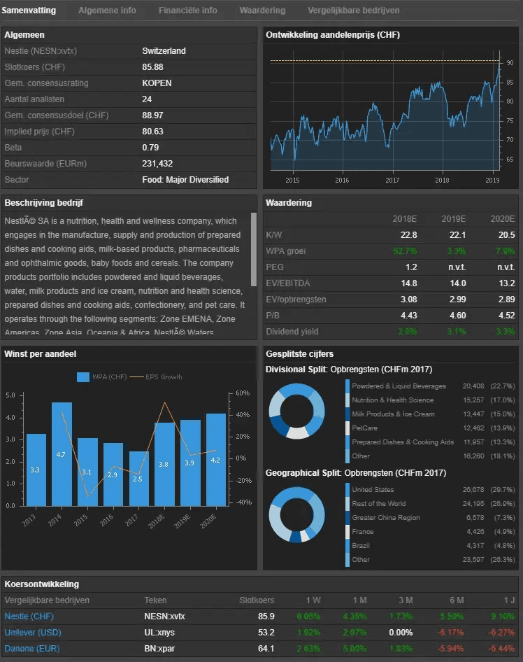 Je vindt er zowel actuele als historische gegevens. Naast informatie zoals eigendomsstructuur, financiële overzichten, waardering of vergelijking van peer groups, kun je ook je eigen benchmarkanalyse opstellen.