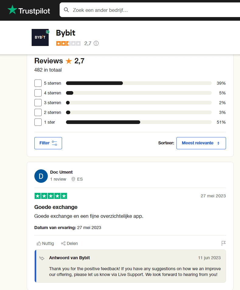Bybit’s klantenservice is bereikbaar via live chat en e-mail, maar de responstijd kan variëren.