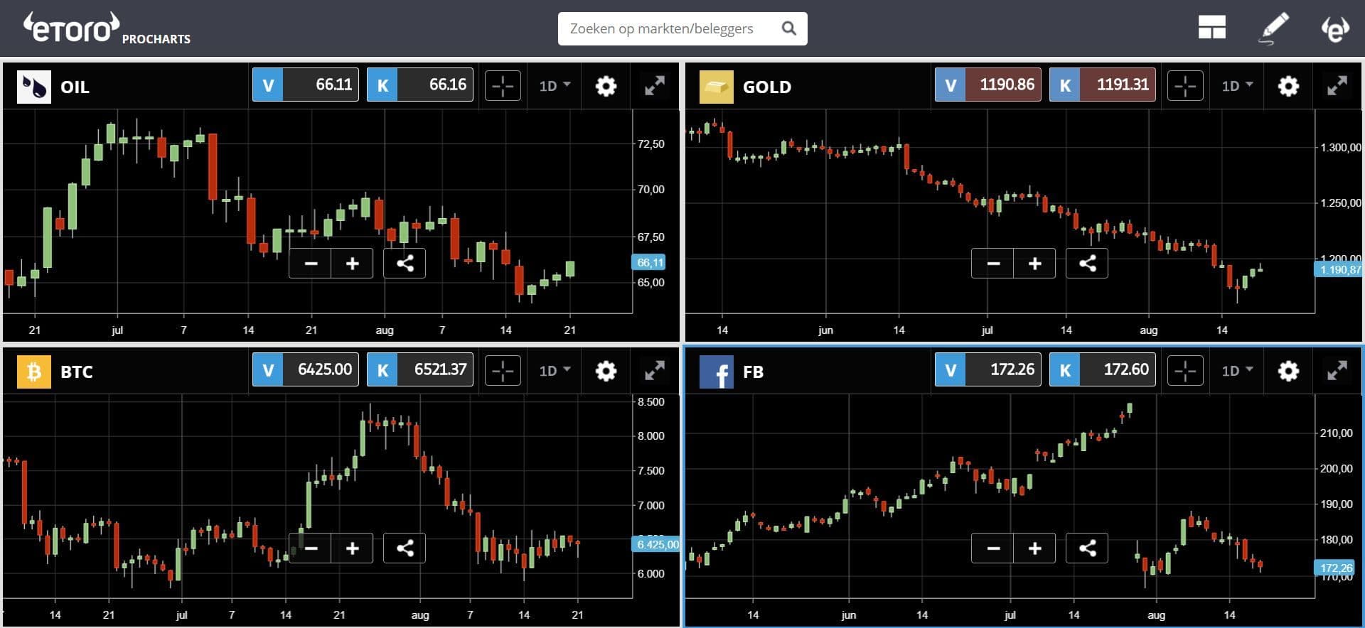 Als je geen beleggings- of handelservaring hebt, is eToro een uitstekende plek om te beginnen. Met de demo versie, waar alle functies volledig beschikbaar zijn, kun je eenvoudig op je eigen tempo alle mogelijkheden uitproberen. De eToro Trading Academy is een goede start om vertrouwd te raken met alles wat met beleggen en traden te maken heeft. Via het sociale handelsplatform kun je eenvoudig succesvolle traders volgen en handelen in o.a. aandelen, valuta’s, indices, cryptocurrencies zoals Bitcoin en Ethereum, en natuurlijk CFD’s.