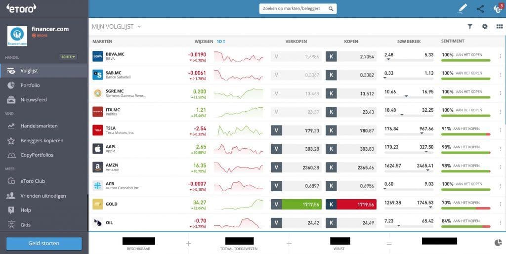eToro is een sociaal handelsplatform waar je kunt handelen in aandelen, valuta's, indices, CFD's en andere soorten effecten.