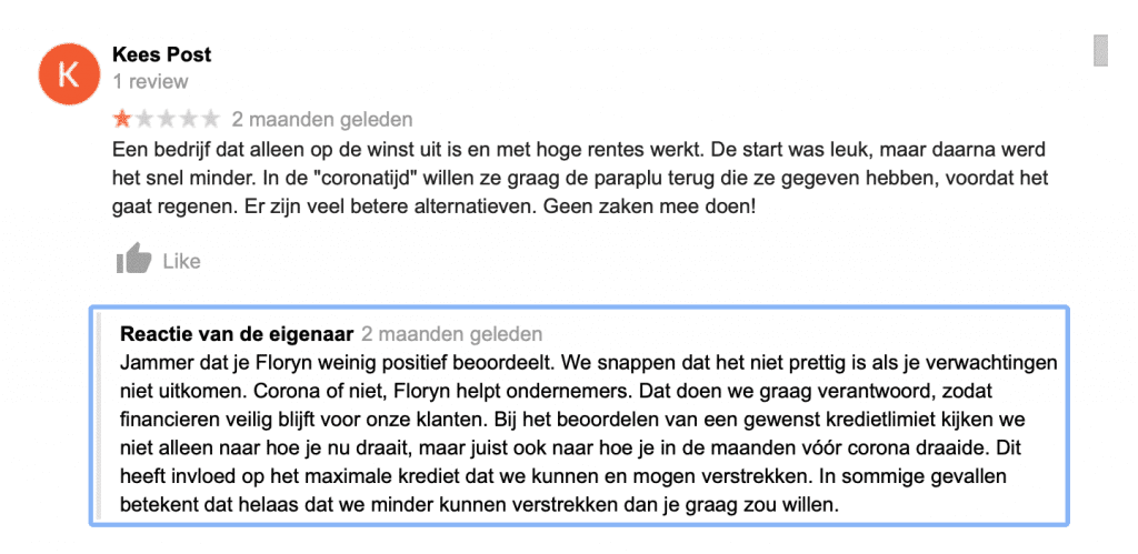 De meeste negatieve reviews hebben dan ook te maken met de afwijzen van een aanvraag, aangezien mensen teleurgesteld zijn wanneer de Floryn lening niet wordt goedgekeurd.