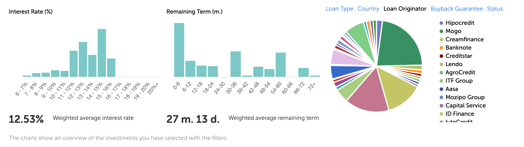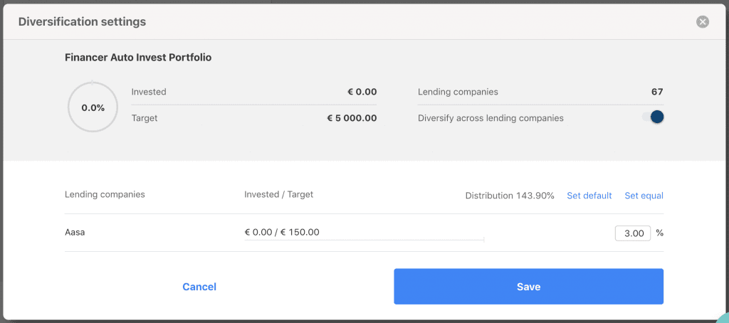 U kunt tevens kiezen om uw investering procentueel te diversifiëren over de verschillende loan originators: