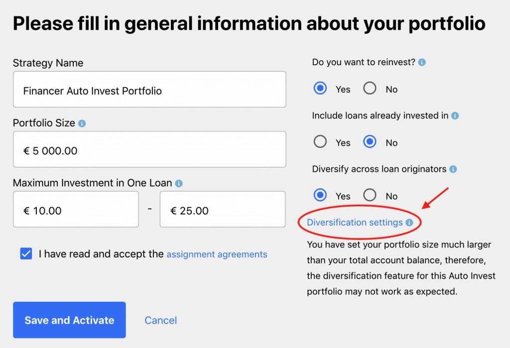 Een goede manier om beter te diversifiëren is om verschillende Auto Invest portefeuilles te creëren en slechts in één soort krediet te beleggen met elk van deze portefeuilles.