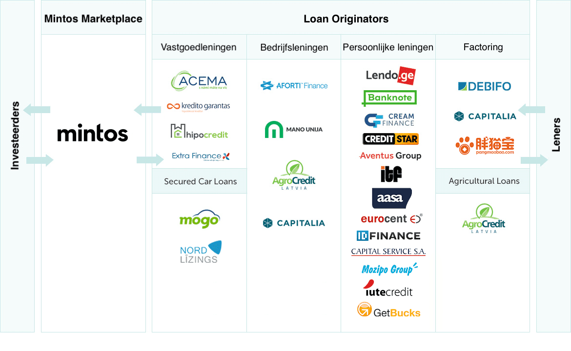 Kredietverstrekkers (loan originators) bieden leningen aan op het Mintos platform om hun activiteiten te financieren.
