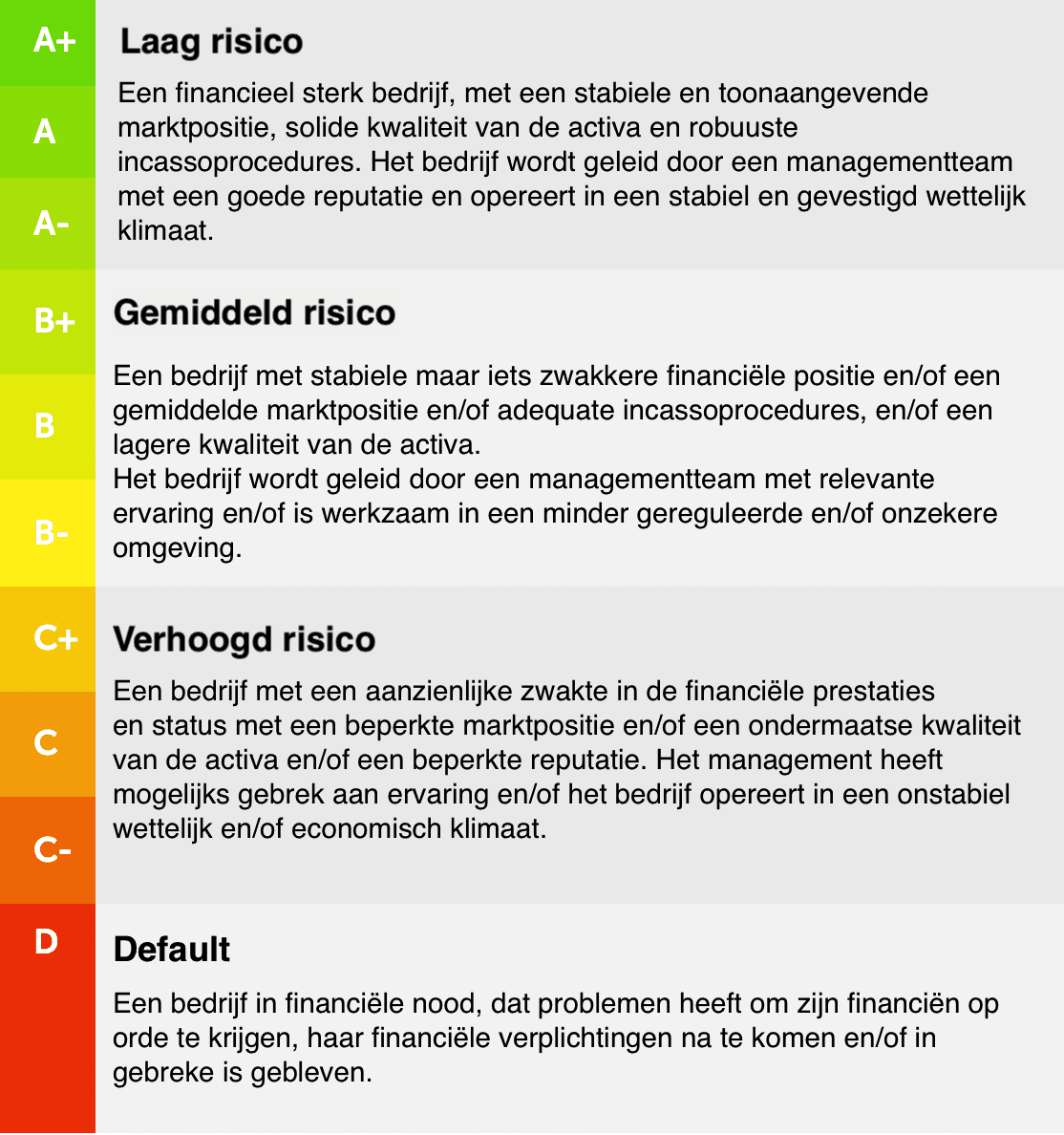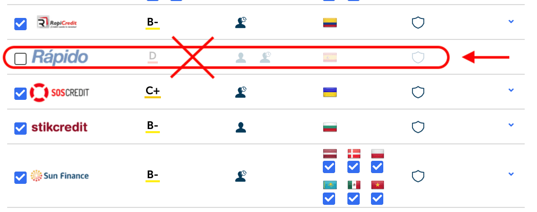 Persoonlijk raden wij af in deze Mintos review om te investeren in leningen van bedrijven met een Mintos Rating van C of lager (C, C-, D) en de volgende loan originators: