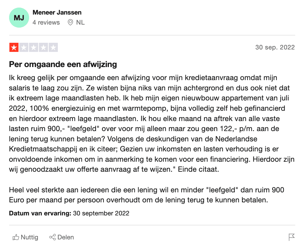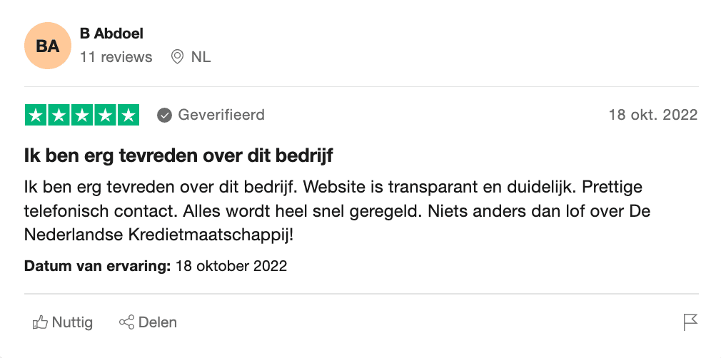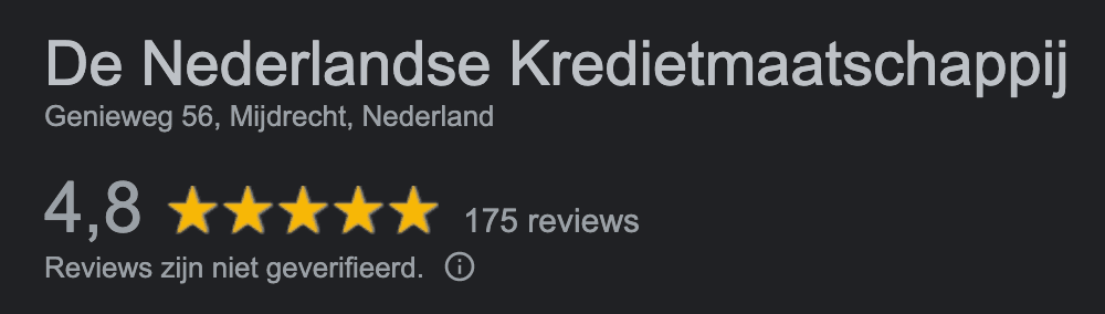 Onderaan deze pagina kan je echte De Nederlandse Kredietmaatschappij ervaringen van klanten lezen.