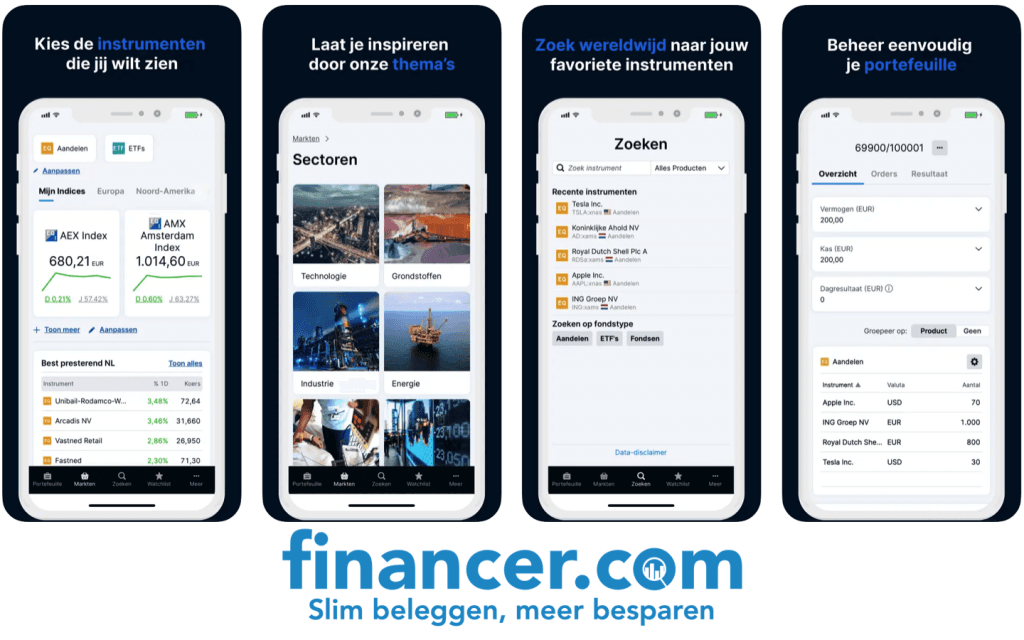 De beleggingsapp is verkrijgbaar voor iPhone en Android en biedt - naast een uitgebreid aanbod - nieuwsupdates, realtime koersen en een agenda met belangrijke data die relevant zijn voor mobiel beleggen.